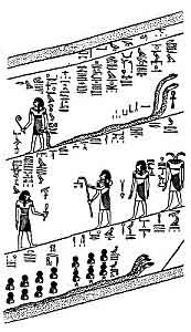 3-5. Three serpents, which move side by side along the ground "upon their bellies". Of them it is said, "Those who are in this picture make their passage to every place each day" (see p. 67).