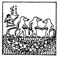 their companions behind them, each of whom holds the ends of a pole or rope (of a net), which is bent in the shape of a bow over his or her head. The men are called HERU-METU-HEKAIU, i.e., "those who are over the words (which have) magical power"; the apes are called SAIU, i.e., producers of magical effects by making knots in ropes, over which they whisper incantations; and the women are called SAIT, and work the same kind of magic as the apes. The object which each member of these three groups holds with both hands above his, or her, head is probably a net and, as M. Lefébure has pointed out, it is actually so represented in the tomb of Rameses VI. (?). In the Babylonian legend of the fight between Marduk and Tiamat, the great she-monster of the deep, the god is made to provide himself with a net with which to entangle her feet. In the Book of the Dead (Chapter cliii. B.) we read of the net ANQET, and in the vignette we see three apes working it, and securing the fish which are caught inside it. As Apep was a monster of the deep, to make use of nets in his capture was a wise decision on the part of the friends of AFU-RA.