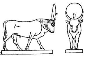 found marked with the right spots. The priests told Herodotus that its birth was miraculous, that it had no earthly father, but was engendered by divine influence, and that the cow, its mother, never had a second calf.
