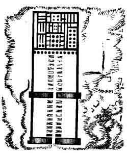 The Egyptians were of a gloomy, serious disposition, and they worshipped in fear rather than in gratitude. Their prayers and sacrifices were sin-offerings rather than thank-offerings. The architecture of their temples was in harmony with their religion. The inner sanctuary, the holy of holies, was always a dark room. Fig. 31 is the ground plan of the temple of Errebek in Thebes, built by Oimenepthah I., and finished by his son Rameses II. The worshippers were allowed to enter a first courtyard, and a second courtyard through gateways formed of massive towers. An avenue between two rows of sphinxes brought them to the portico, under which the sacrifices and libations were made in their sight and on their behalf. But none