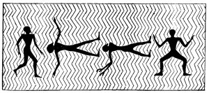 The waters were also thought to be peopled by some kind of ghosts or spiritual beings, and we see them represented among the sculptures on the sarcophagus of Oimenepthah I. (see Fig. 82a). They are in the form of men, but
