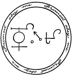 o'clock. He will demand a hair of your head, but give him one of a fox, and see that he takes it. His office is to discover and transport all treasures and perform anything that you may will. Write in his circle: TETRAGRAMMATON, TETRAGRAMMATON,