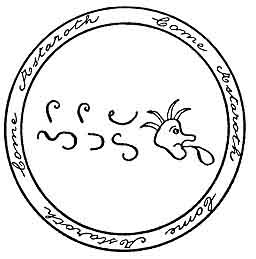 [paragraph continues] Requisites: coal, and consecrated chalk to compose the circle, about which these words must be written: I forbid thee, Lucifer, in the name of the Most Holy Trinity, to enter within this circle. A mouse must be provided to give him; the master must have a stole and holy water, an alb also and a surplice. He must recite the Conjuration in a lively manner, commanding sharply and shortly, as a lord should address his servant, 1 with all kinds of menaces: SATAN, RANTAM, PALLANTRE, LUTAIS,