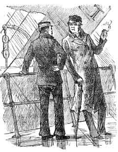 Our passage across from the Head was made in a rain so pouring and steady, that sea and coast were entirely hidden from us, and one could see very little beyond the glowing tip of the cigar which remained alight nobly in spite of the weather. Then the gallant exertions of that fiery spirit were over forever, and burning bravely to the end it had breathed its last in doing its master service, all became black and cheerless around; the passengers had dropped off one by one, preferring to be dry and ill below rather than wet and squeamish above; even the mate, with his gold-laced cap (who is so astonishingly like Mr. Charles Dickens that he might pass for that gentle man)--even the mate said he would go to his cabin and turn in. So there remained nothing for it but to do as all the world had done.
