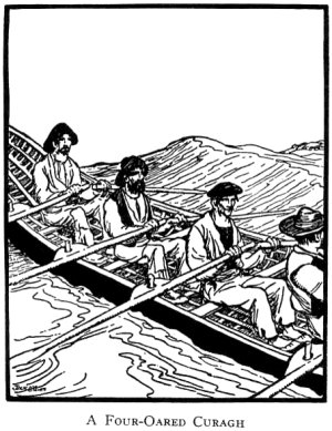 We set off. It was a four-oared curagh, and I was given the last seat so as to leave the stern for the man who was steering with an oar, worked at right angles to the others by an extra thole-pin in the stern gunnel.
