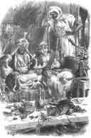 Here they were placed, as it is the custom of the country, on rich carpets marked with gold and silver flowers. The king and queen were seated at the upper end of the room; and a number of dishes were brought in for dinner. They had not sat long, when a vast number of rats and mice rushed in, helping themselves from almost every dish. The captain wondered at this, and asked if these vermin were not very unpleasant.