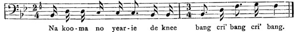 And the Old Witch man says to her, "Your head and your lights is for my dog, and your liver is for my supper!" So the girl started a song,--
