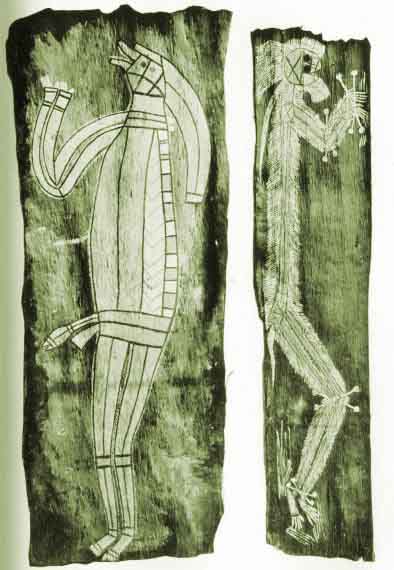 Bark Drawing: Two Mormos, Nangintain (L.), Auunau (R.)