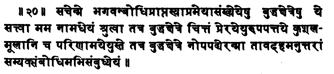 The 18th Pranidhâna in the Sanskrit text agrees with the 19th in both Chinese translations; but the 20th in these translations is somewhat shorter than the 19th in the Sanskrit text. The shorter translation is as follows:--