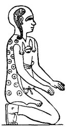[paragraph continues] Soothsayer, who followed, carrying an hour glass, and a palm branch, the emblem of the year, could repeat the four astrological books: one on the moon's phases, one on the fixed stars, and two on their heliacal risings. The Scribe, who walked next, carrying a book and the flat rule which held the ink and pen, was acquainted with the geography of the world and of the Nile, and with those books which describe the motions of the sun, moon, and planets, and the furniture of the temple and consecrated places. The Master of the Robes carried the rod of justice, and the sacrificial vase. He understood the ten books relating to education, to the marks on the sacred heifers, and to the worship of the gods, embracing the sacrifices, the first-fruits, the