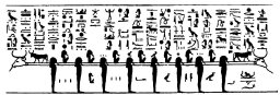 The Gods of the Third Division of the Tuat towing the Boat of Ra. The Eight Bearers of the Boat of the Earth and its Seven Gods.