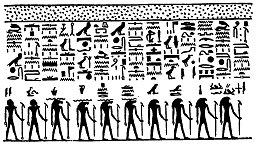"It is those who are in this picture who make ready for Ra, a way into the eastern horizon of heaven,, and they lead the way for the god who hath created them with their hands, [standing] two on the right hand