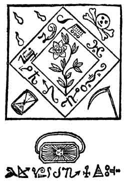 II. Gives the love and complaisance of the entire female sex. It should be embroidered in silver on black satin. The evoking words are NADES, SURADIS, MANINER, pronounced with the ring-which should be on the middle finger of the left hand-pressed against the lips. This conjuration ensures the manifestation of a genius with rose-coloured wings, who, if addressed with the words SADER, PROSTAS, SOLASTER, Will traverse all space to transport you the lady of your heart, though she were the queen of the Caliph's seraglio. At the words MAMMES, LAHER, she will be removed by four slaves. It will be observed that this is occult ribaldry.