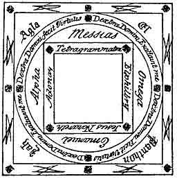 operator shall rejoice in the honour and glory of the grand ADONAY, ELOIM, ARIEL and JEHOVAM, taking care to preserve the skin of the virgin kid to form the round or grand Kabalistic circle, in which he must himself stand on the day of the supreme enterprise.