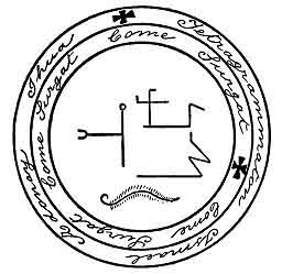 o'clock. He will demand a hair of your head, but give him one of a fox, and see that he takes it. His office is to discover and transport all treasures and perform anything that you may will. Write in his circle: TETRAGRAMMATON, TETRAGRAMMATON,