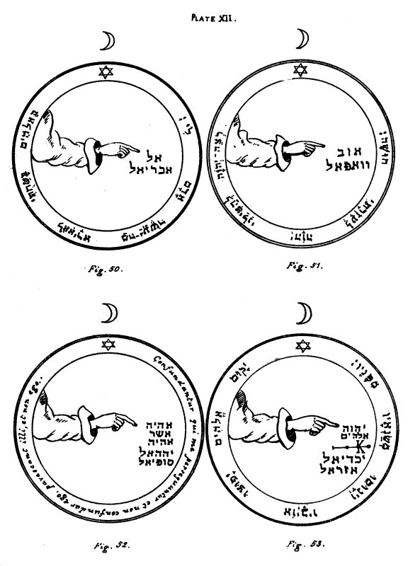 Editor's Note.--The Divine Name Eheieh Asher Eheieh, and the Names of the Angels Yahel and Sophiel. The versicle is:--'Let them be confounded who persecute me, and let me not be confounded; let them fear,and not I.'