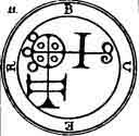 BUER.--The Tenth Spirit is Buer, a Great President. He appeareth in Sagittary, and that is his shape when the Sun is there. He teaches Philosophy, both Moral and Natural, and the Logic Art, and also the Virtues of all Herbs and Plants. He healeth all distempers in man, and giveth good Familiars. He governeth 50 Legions of Spirits, and his Character of obedience is this, which thou must wear when thou callest him forth unto appearance.