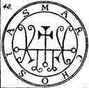 speak with a hoarse Voice. He is a Mighty President and Powerful. He can build Houses and High Towers, and can bring to thy Knowledge Enemies' Desires and Thoughts, and that which they have done. He giveth Good Familiars. If thou makest a Sacrifice unto him he will receive it kindly and willingly, but he will deceive him that doth it. He governeth 40 Legions of Spirits, and his Seal is this, etc.
