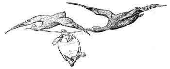 "That's right," said they. And making the tortoise bite hold of a stick, they themselves took the two ends in their teeth, and flew up into the air.