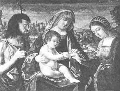 | THE MARRIAGE OF ST. CATHERINE. By Previtali (15th cent.). In the Church of San Giobbe at Venice. |