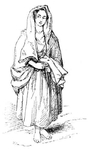 In the various cabins I have entered, I have found talking a vain matter: the people are suspicious of the stranger within their wretched gates, and are shy, sly, and silent. I have, commonly, only been able to get half-answers in reply to my questions, given in a manner that seemed plainly to intimate that the visit was unwelcome. In this rude hostel, however, the landlord was a little less reserved, offered a seat at the turf-fire, where a painter might have had a good subject for his skill. There was no chimney, but a hole in the root up which a small portion of the smoke ascended (the rest prefer-ring an egress by the door, or else to remain in the apartment altogether); and this light from above lighted up as rude a set of figures as ever were seen. There were two brown women with black eyes and locks, the one knitting stockings on the floor, the other "racking" (with that natural comb which five horny fingers supply) the elf-locks of a dirty urchin between her knees. An idle fellow was smoking his pipe by the fire; and beside him sat a stranger, who had been made welcome to the shelter of the place--a sickly, well-looking man, whom I mistook for a deserter at first, for he had evidently been a soldier.