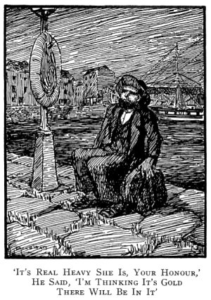 'It's real heavy she is, your honour,' he said; 'I'm thinking it's gold there will be in it.'
