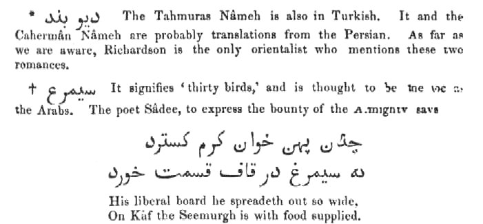 [a] see D'Herhelot, Richardson's Dissertation, Ouseley's Persian Miscellanies, Wahl in the Mines de l'Orient, Lane, Thousand and One Nights, Forbes, Hathn Tai, etc., etc.