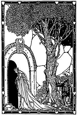 The prince consented, and clerk Wylan taking with him his clasped book went before midnight to the rooks by the Giant's Grave, and concealed himself by the mouth of a cave leading down to Fairyland. As he lay there a lady hurried past him into the cave. She was royally dressed, and her crown glittered in the moonlight--she was the Maid of the Green Forest.