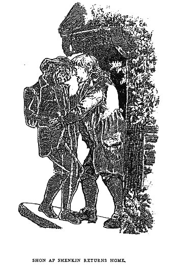 In the legend of lola ap Hugh, than which no story is more widely known in Wales, the fairy origin of that famous tune 'Ffarwel Ned Pugh' is shown. It is a legend which suggests the Enchanted Flute fancy in another form, the instrument here being a fiddle, and the victim and player one under fairy control. In its introduction of bread and cheese and candles it smacks heartily of the soil. In North Wales there is a famous cave which is said to reach from its entrance on the hill-side under the Morda, the Ceiriog, and a thousand other streams, under many a league of mountain, marsh and moor, under the almost unfathomable wells that, though now choked up, once supplied Sycharth, the fortress of Glyndwrdwy, all the way to Chirk Castle.' Tradition said that whoever went within five paces of its mouth would be drawn into it and lost. That the peasants dwelling near it had a thorough respect for this tradition, was proved by the fact that all around the dangerous hole 'the grass grew as thick and as rank as in the wilds of America or some unapproached ledge of the Alps.' Both men and animals feared the spot: 'A fox, with a pack of hounds in full cry at his tail,' once turned short round on approaching it, 'with his hair all bristled and fretted like frostwork with terror,' and ran into the middle of the pack, 'as if anything earthly--even an earthly death--was a relief to his supernatural perturbations.' And the dogs in pursuit of this fox all declined to seize him, on account of the phosphoric smell and gleam of his coat. Moreover, 'Elias ap Evan, who happened one fair night to stagger just upon the rim of the forbidden space, was so frightened at what he saw and heard that he arrived at home perfectly sober, 'the only interval of sobriety, morning, noon, or night, Elias had been afflicted with for upwards of twenty years.' Nor ever after that experience-concerning which he was wont to shake his head solemnly, as if he might tell wondrous tales an' he dared--could Elias get tipsy, drink he never so faithfully to that end. As he himself expressed it, 'His shadow walked steadily before him, that at one time wheeled around him like a pointer over bog and stone.' One misty Hallow E'en, Iola ap Hugh, the fiddler, determined to solve the mysteries of the Ogof, or Cave, provided himself with 'an immense quantity of bread and cheese and seven pounds of candles,' and ventured in. He never returned; but long, long afterwards, at the twilight of another Hallow E en, an old shepherd was passing that-as he called it--' Land-Maelstrom of Diaboly,' when he heard a faint burst of melody dancing up and down the rocks above the cave. As he listened, the music gradually 'moulded itself in something like a tune, though it was a tune the shepherd had never heard before.' And it sounded as if it were being played by some jolting fiend, so rugged was its rhythm, so repeated its discordant groans. Now there appeared at the mouth of the Ogof a figure well known to the shepherd by remembrance. It was dimly visible; but it was lob ap Hugh, one could see that at once. He was capering madly to the music of his own fiddle, with a lantern dangling at his breast. 'Suddenly the moon shone full on the cave's yellow mouth, and the shepherd saw poor lob for a single moment-but it was distinctly and horribly. His face was pale as marble, and his eyes stared fixedly and deathfully, whilst his head dangled loose and unjointed on his shoulders. His arms seemed to keep his fiddlestick in motion without the least sympathy from their master. The shepherd saw him a moment on the verge of the cave, and then, still capering and fiddling, vanish like a shadow from his sight; but the old man was heard to say he seemed as if lie slipped into the cave in a manner quite different from the step of a living and a willing man; 'he was dragged inwards like the smoke up the chimney, or the mist at sunrise.' Years elapsed 'all hopes and sorrows connected with poor lob had not only passed away, but were nearly forgotten; the old shepherd had long lived in a parish at a considerable distance amongst the hills. One cold December Sunday evening he and his fellow-parishioners were shivering in their seats as the clerk was beginning to light the church, when a strange burst of music, starting suddenly from beneath the aisle, threw the whole congregation into confusion, and then it passed faintly along to the farther end of the church, and died gradually away till at last it was impossible to distinguish it from the wind that was careering and wailing through almost every pillar of the old church.' The shepherd immediately recognised this to be the tune Iolo had played at the mouth of the Ogof. The parson of the parish-a connoisseur in music-took it down from the old man's whistling; and to this day, if you go to the cave on Hallow eve and put your ear to the aperture, you may hear the tune 'Ffarwel Ned Pugh' as distinctly as you may hear the waves roar in a sea-shell. 'And it is said that in certain nights in leap-year a star stands opposite the farther end of the cave, and enables you to view all through it and to see lob and its other inmates.' ['Camb. Quarterly,' i., 45.]