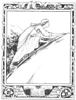 And aye they rode, and on they rode, till they came to a dark and ugsome glen, where they stopped, and the lady lighted down. Says the Bull to her: 'Here you must stay till I go and fight the Old One. You must seat yourself on that stone, and move neither hand nor foot till I come back, else I'll never find you again. And if everything round about you turns blue, I have beaten the Old One; but should all things turn red, he'll have conquered me.' She set herself down on the stone, and by and by all round her turned blue. Overcome with joy, she lifted one of her feet, and crossed it over the other, so glad was she that her companion was victorious. The Bull returned and sought for her, but never could find her.