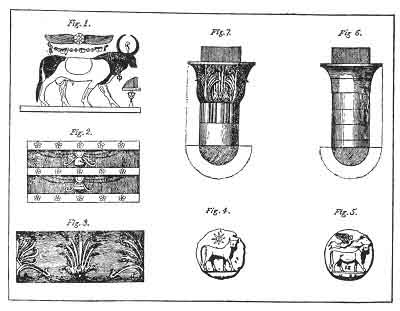 In the Gallery at Florence is a collossal image of the organ of generation, mounted on the back parts of a lion, and hung round with various animals. By this is represented the co-operation of the creating and destroying powers, which are both blended and united in one figure, because both are derived from one cause. The animals hung round show likewise that both act to the same purpose, that of replenishing the earth, and peopling it with still rising generations of sensitive beings. The Chimæra of Homer, of which the commentators have given so many whimsical interpretations, was a symbol of the same kind, which the poet probably, having seen in Asia, and not knowing its meaning (which was only revealed to the initiated) supposed to be a monster that had once infested the country. He describes it as composed of the forms of the goat, the lion, and the serpent, and breathing fire from its mouth. 2 These are the symbols of the creator, the destroyer, and the preserver, united and animated by fire, the divine essence of all three. 3 On a gem, published in the