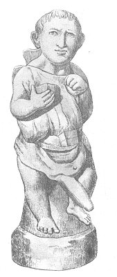 This dwarf holds two objects in his hand which it would be difficult to qualify--two lumps of bread, perhaps. He carries in his belt a sort of casket, which may be the crepundia, a small box or purse for children to keep their toys in.