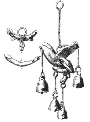 This singular figure, to which are suspended four little bells, in its wings and head resembles a bird, and in the hinder part a lion: a threefold symbol of the generative principle, which fights with the strength of a lion, propagates with the swiftness of an eagle, and triumphs over all obstacles.
