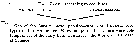Having dealt almost exclusively with the question of the origin of Man in the foregoing criticism of Western Evolutionism, it may not be amiss to define the position of the Occultists with regard to the differentiation of species. The pre-human fauna and flora have been already generally dealt with in the Commentary on the Stanzas, and the truth of much of modern biological speculation admitted, e.g., the derivation of birds from reptiles, the partial truth of "natural selection," and the transformation theory generally. It now remains to clear up the mystery of the origin of those first mammalian fauna which M. de Quatrefages so brilliantly endeavours to prove as contemporary with the Homo primigenius of the Secondary Age.